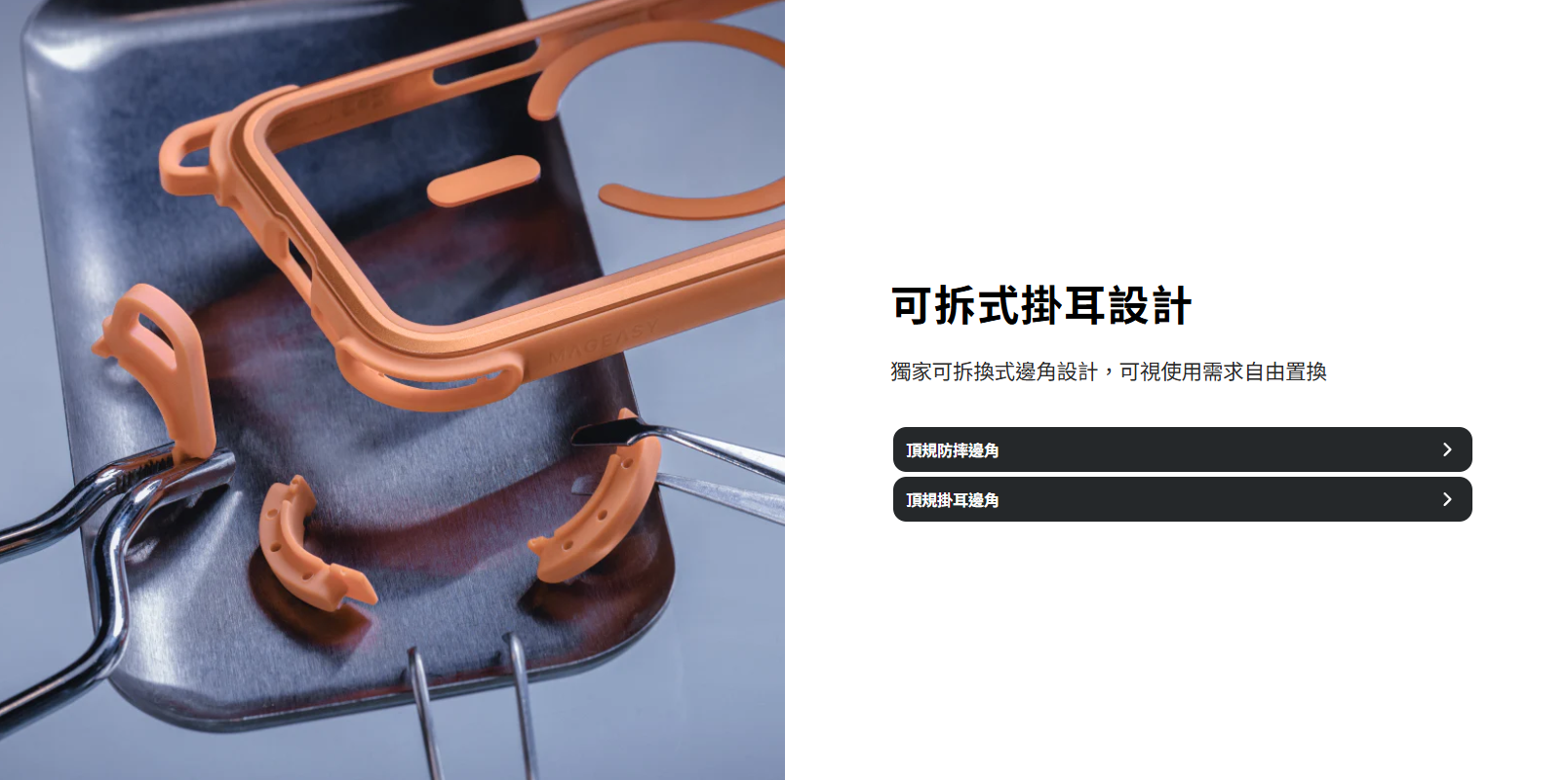 •可拆式邊角設計:獨家可拆換式邊角設計,可視使用需求自由置換。