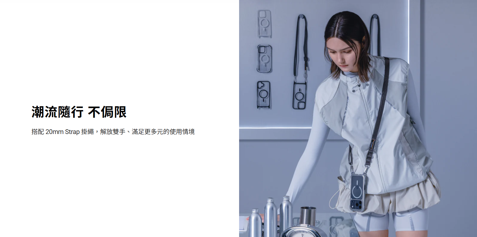 尼龍掛耳邊角:實心防震搭配尼龍織帶設計,隨心吊掛不同配飾