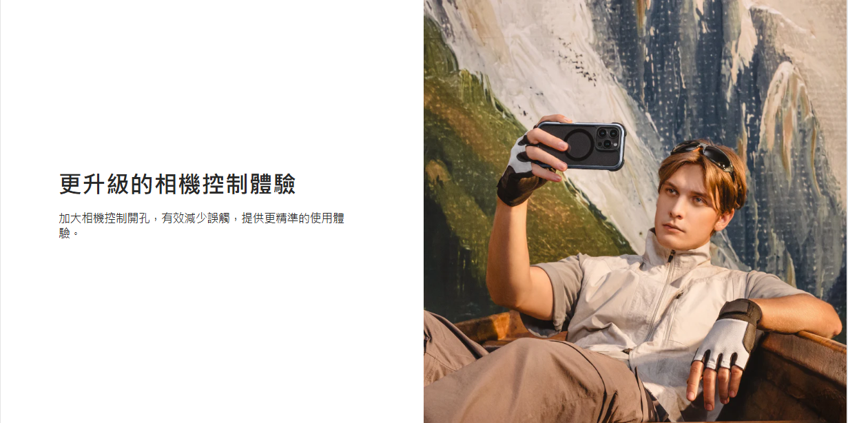 加大相機控制開孔,有效減少誤觸,提供更精準的使用體驗。