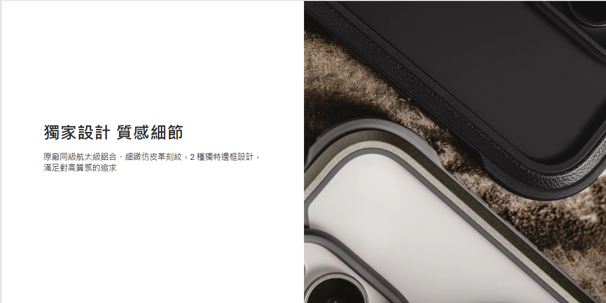 原廠同級航太級鋁合金邊框,透過頂級工藝打造質感細節。
