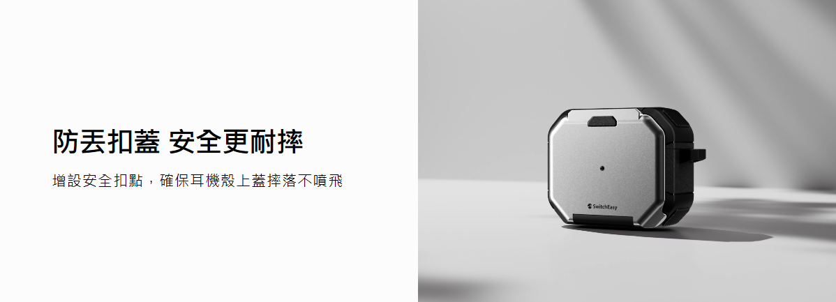 為解決使用者最常遇到的痛點,新增防丟扣蓋確保耳機上蓋摔落也不噴飛。