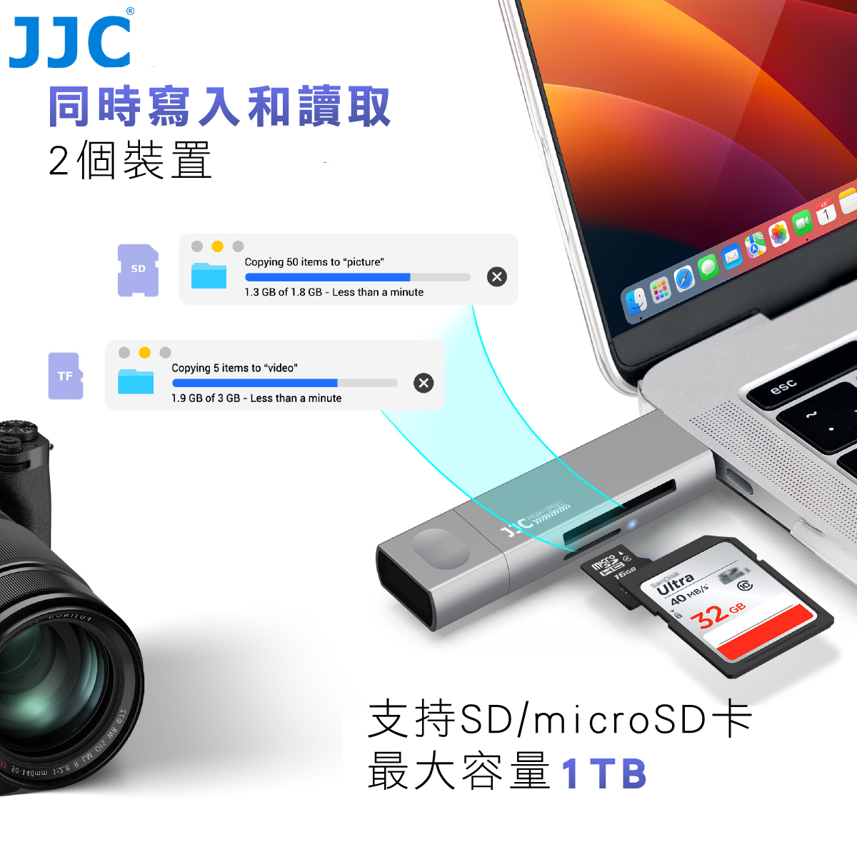 ◾ 可同時讀取SD及TF卡